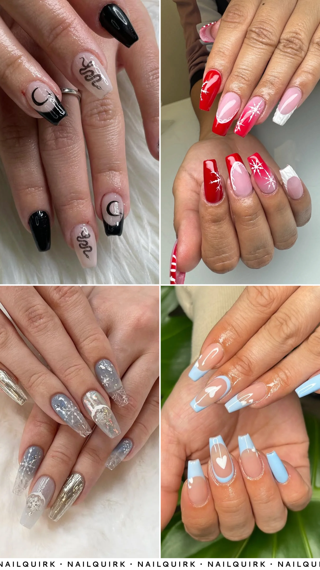 Every time I look at this, I hear Mariah Carey in the background. Bold, festive, and just dramatic enough to make winter nails feel fun again.