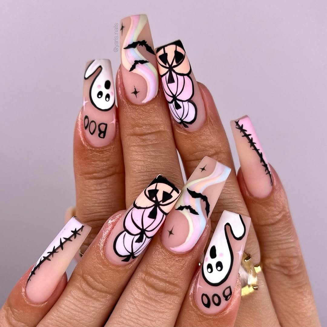 Adorable ghosts say “BOO!” in bubble letters, pastel pumpkins swirl through candy skies, and bats fly across matte clouds in the cutest Halloween remix I’ve ever seen. It’s spooky season with a soft twist—and I’m obsessed.