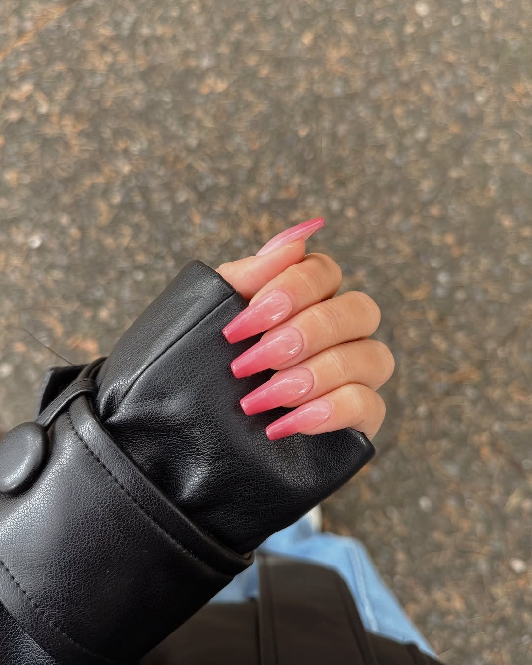 Glossy, juicy, and dipped in the dreamiest rosé glaze—this is what happens when simplicity meets seduction. Each nail glows with that high-shine, jelly-finish magic, and the shape is butter-smooth perfection.