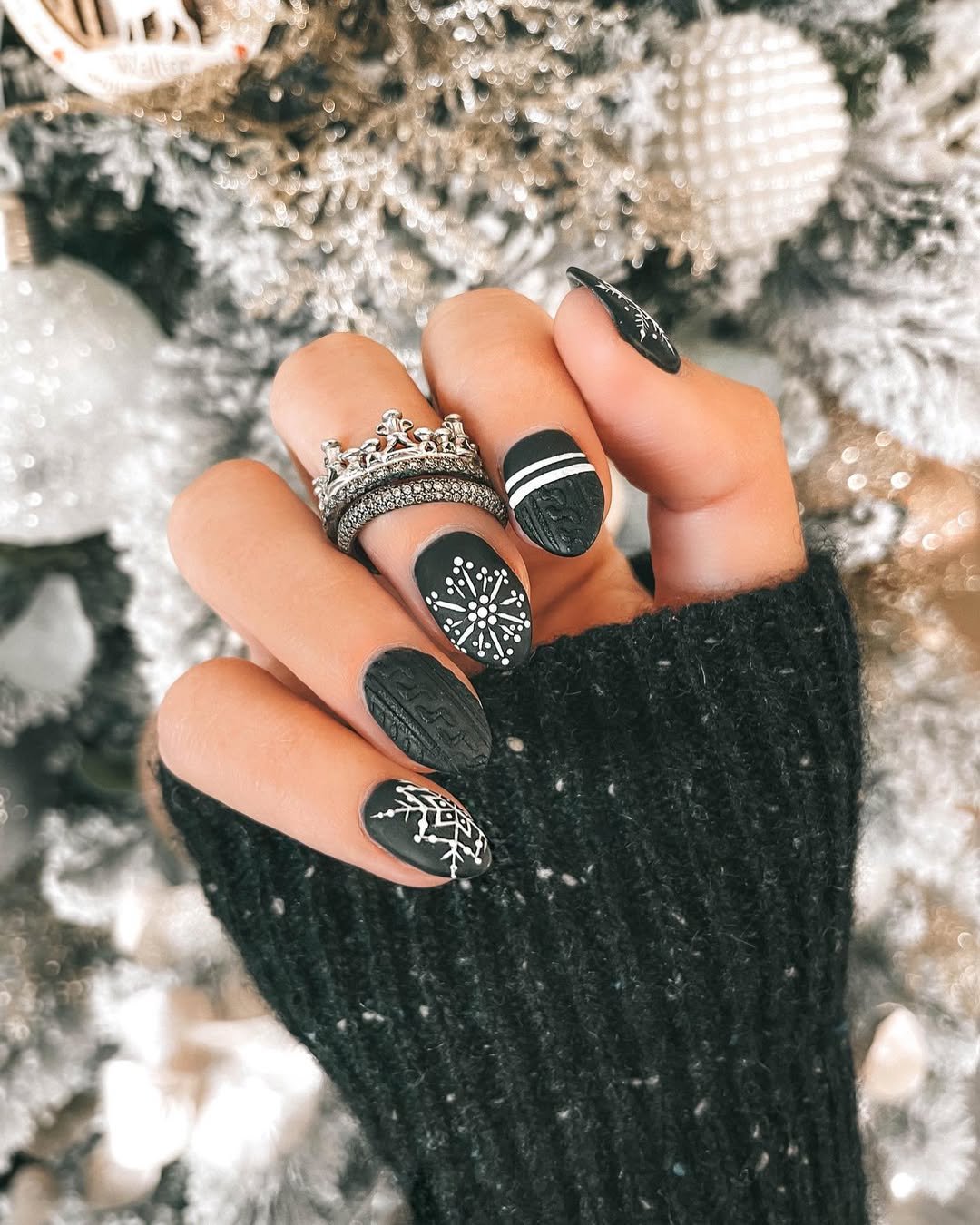 The contrast of rich black against stark white makes every design pop, turning your nails into wearable winter accessories that beg to be photographed under twinkling lights.